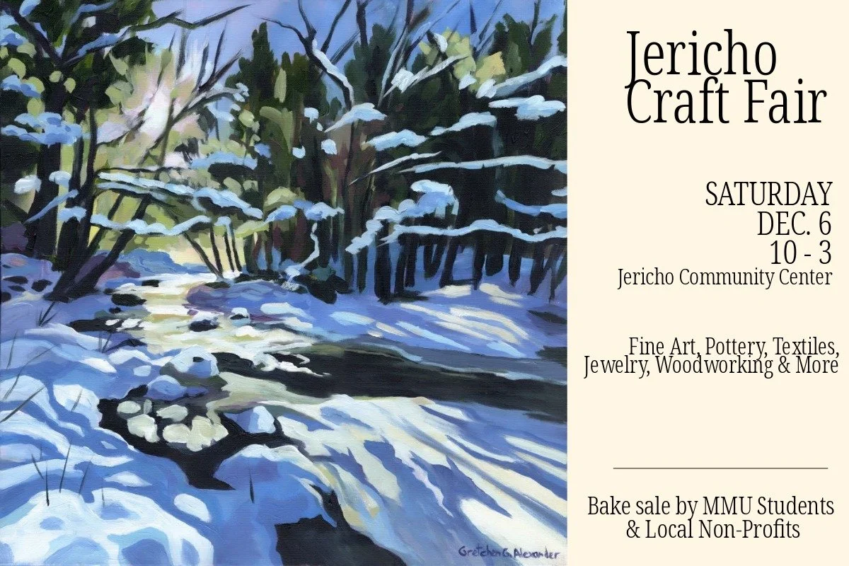 Gretchen will be a vendor at the Jericho Craft Fair on Saturday December 6th from 10am - 3 pm at the Jericho Community Center. You will find her original paintings, prints, cards and stickers for sale. The fair will feature the handmade creations of local people including Pottery, Jewelry, Woodworking, Textiles and more.